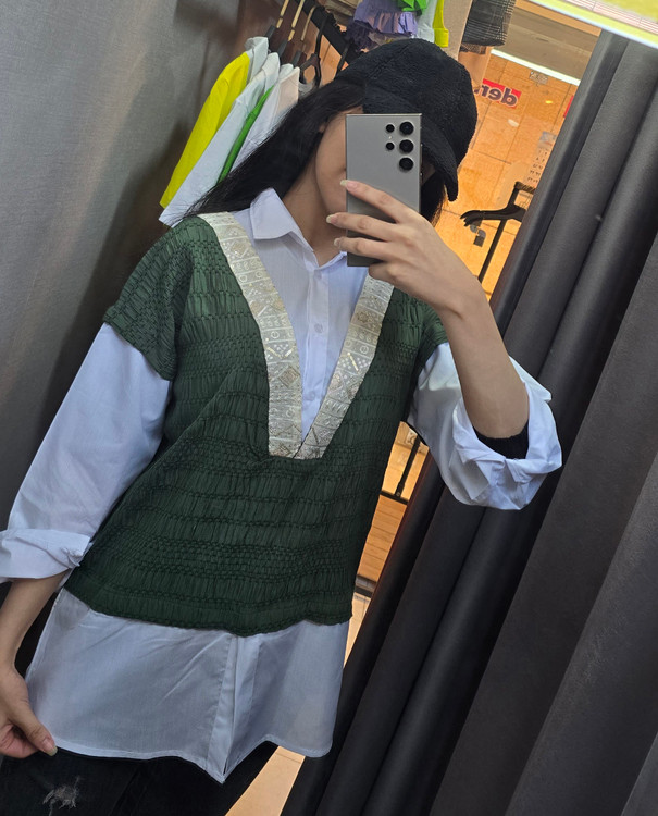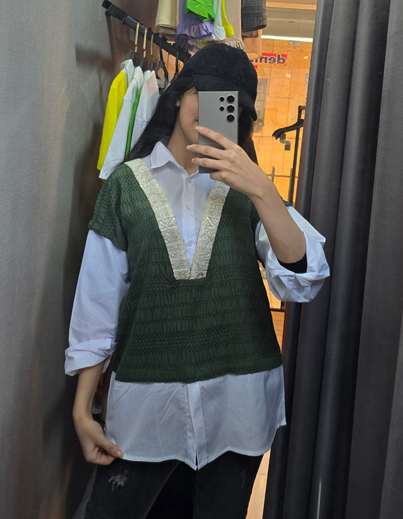 جنس شومیز سفید داکرون روی کار کوک دوزی وترمه